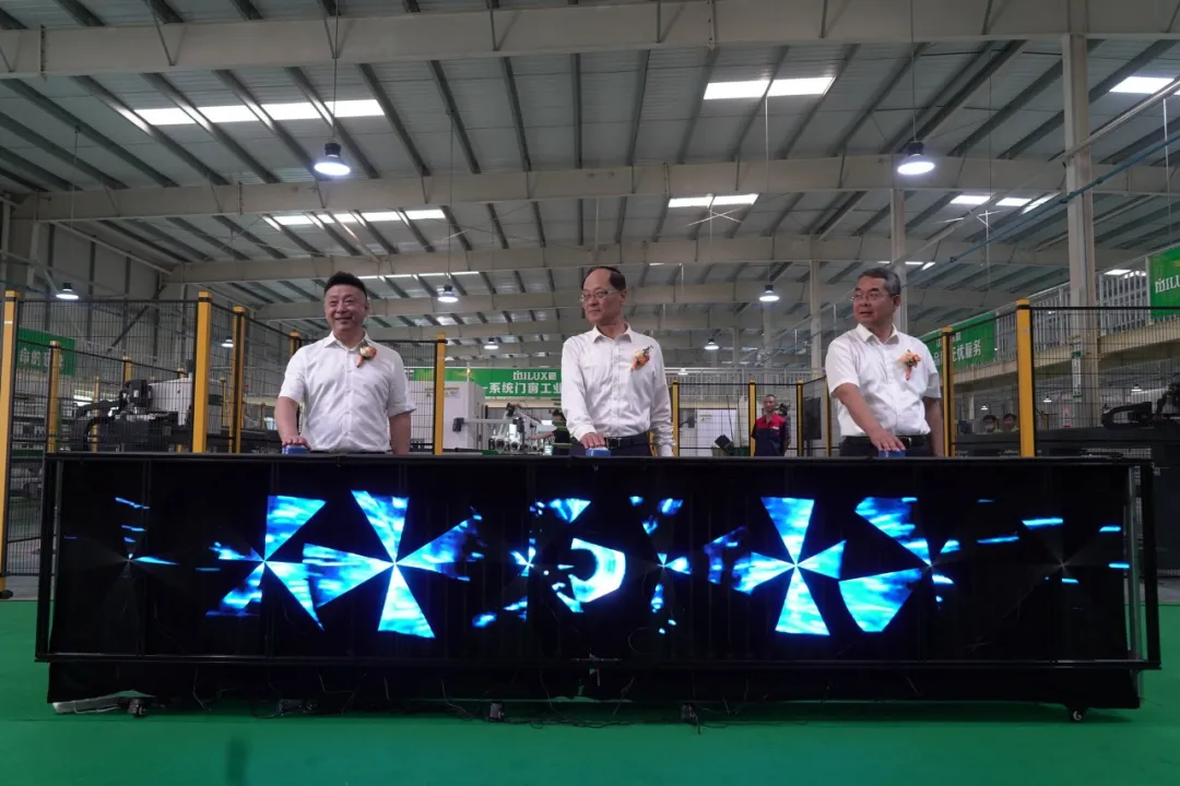 全國(guó)政協(xié)委員、中國(guó)建筑金屬結(jié)構(gòu)協(xié)會(huì)會(huì)長(zhǎng)郝際平、臨朐縣委書(shū)記杜建華、米蘭之窗董事長(zhǎng)馬俊清共同為中國(guó)首家系統(tǒng)鋁合金窗工業(yè)4.0智能制造生產(chǎn)線做開(kāi)機(jī)儀式。